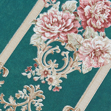 Green-Based Symmetrical Floral Non-pasted Embossed Wallpaper-9.5M×53cm