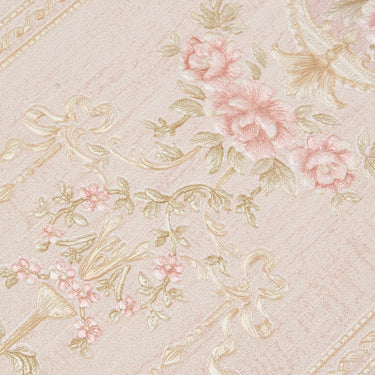 Lotus Root Pink-Based Symmetrical Floral Non-pasted Embossed Wallpaper-9.5M×53cm