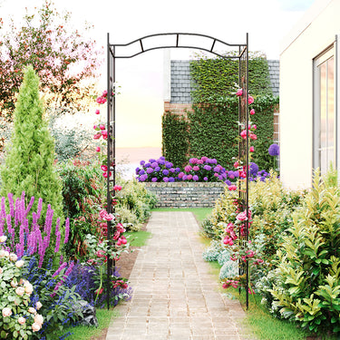 Elevate the beauty of your garden with our elegant iron garden arch. Designed for both functionality and style, this versatile arch is ideal for creating stunning entrances, supporting climbing plants like roses or ivy, and adding a charming focal point to weddings and other outdoor events. Crafted from high-quality, corrosion-resistant iron, this arch is built to withstand the elements and provide lasting durability. Easy to assemble and install, it can be secured into the ground or attached to a wall, fence, or nearby pot. Bring timeless beauty and grace to your garden with this stunning iron arch.