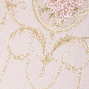 Pink-Based Curved Line Non-pasted Embossed Wallpaper-9.5M×53cm