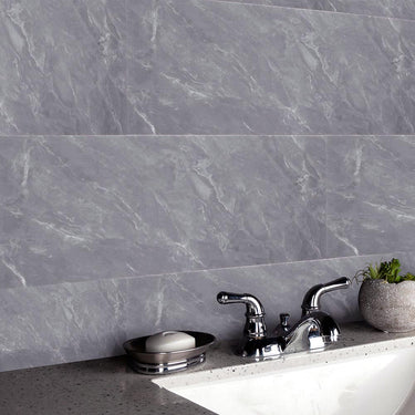 HushTile - Peel and Stick Grey Marble Effect Wall Tile Stickers