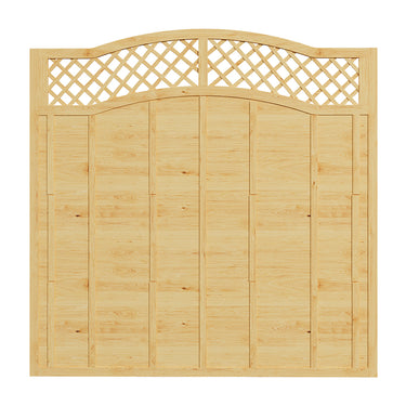 Bring structure and style to your outdoor area with this beautifully designed wooden privacy fence. Crafted from high-quality spruce wood, it features a classic vertical panel layout with a refined lattice accent at the top, offering the perfect balance of elegance, airflow, and privacy. The natural wood grain finish seamlessly blends into any garden or backyard setting, making it an ideal solution for enhancing both aesthetics and functionality.