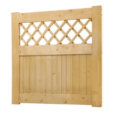 Welcome guests and elevate the beauty of your outdoor space with our Wooden Garden Gate. Designed to combine rustic charm and practical functionality, this garden gate will serve as both a protective barrier and an attractive focal point in your garden. Featuring a natural wood grain slatted surface, the gate's elegant rhombus lattice design above adds a touch of timeless sophistication to your property.