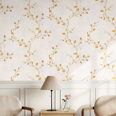 Beige-Based Floral Vine Non-pasted Embossed Wallpaper-9.5M×53cm