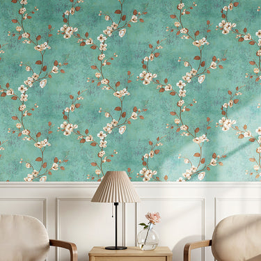 Green-Based Floral Vine Non-pasted Embossed Wallpaper-9.5M×53cm