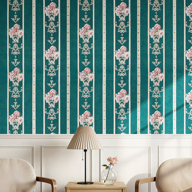 Green-Based Symmetrical Floral Non-pasted Embossed Wallpaper-9.5M×53cm