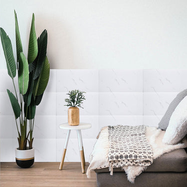 HushTile - Peel and Stick White Marble Effect Wall Tile Stickers