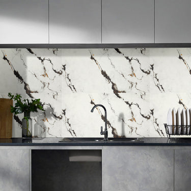 Noble Stone - Chic White and Black Marble Effect Peel and Stick Wall Tiles