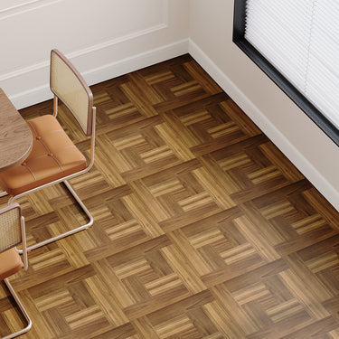 Refresh your interiors with this set of PVC parquet flooring tiles. Designed with realistic textures and subtle contrasts, they create refined depth and a three-dimensional effect. The richly detailed surface delivers a sophisticated finish that complements both modern and classic spaces with ease. Installation is simple and requires no complicated adhesives, ensuring a flawless look in every corner. Whether enhancing the comfort of a home or elevating the style of a commercial space, these tiles transform the atmosphere with timeless elegance.